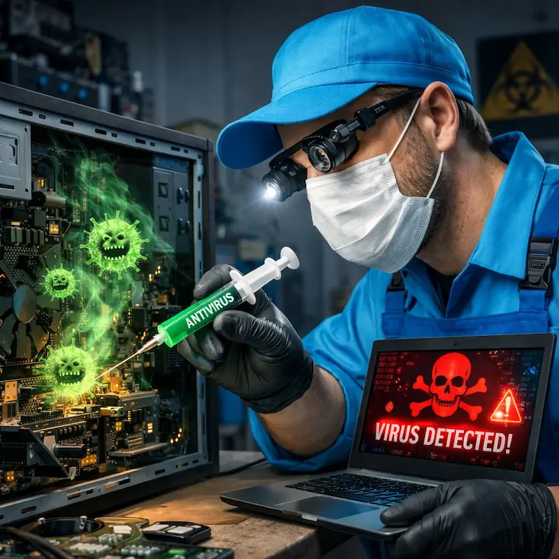 Если компьютер стал работать медленно, появляются навязчивые окна, самопроизвольно открываются сайты или антивирус отключается без причины - скорее всего, система заражена. Мы выполняем лечение компьютера от вирусов во Владимире с выездом мастера и полной проверкой системы.